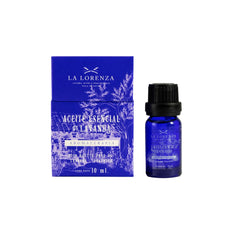 Aceite esencial de lavanda en botella de vidrio con aplicador tipo gotero de 10 ml. Empacado en una hermosa caja de La Lorenza.